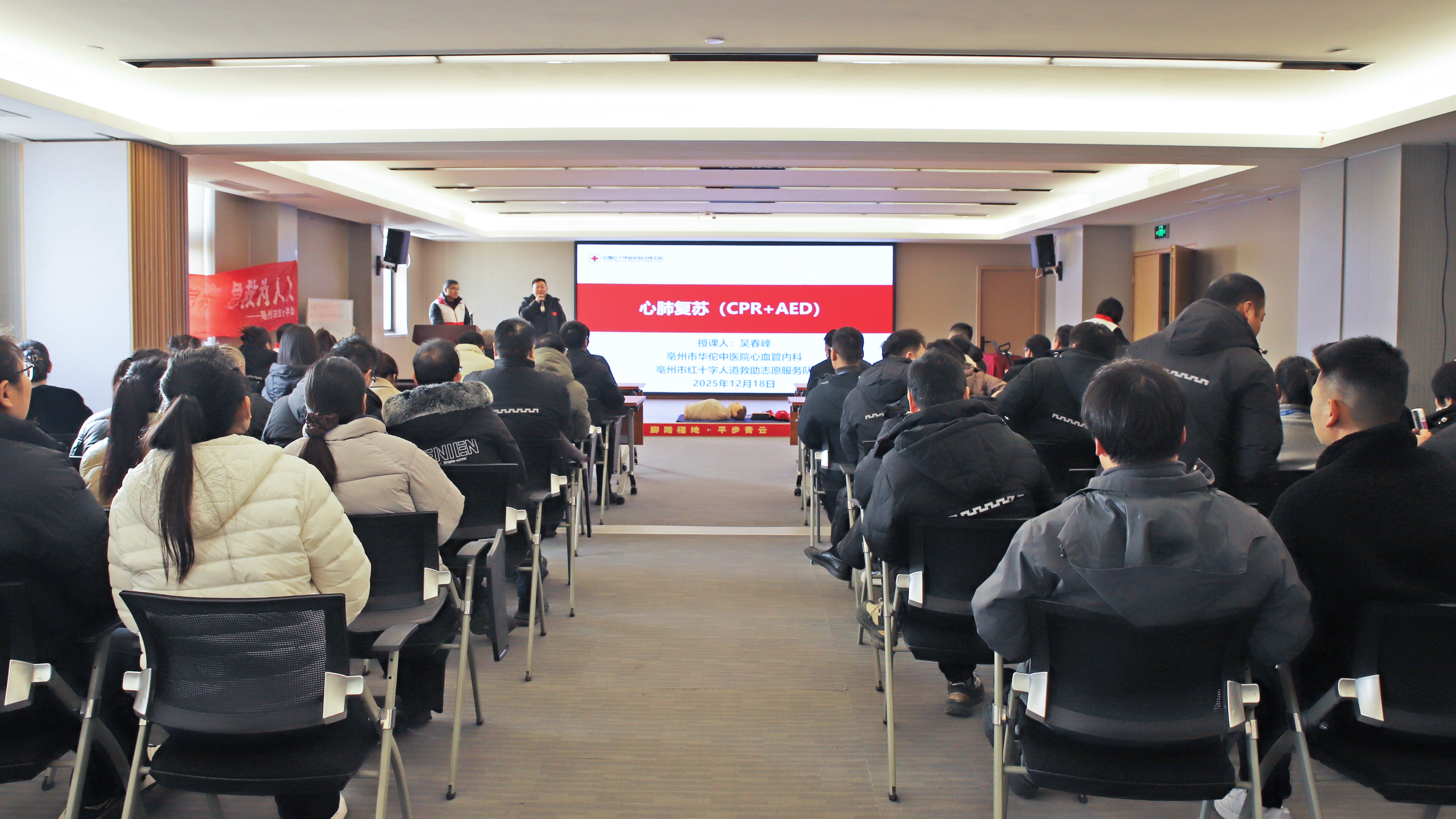 为切实增强全体员工的安全防范意识与应急处置能力,保障员工与客商的生命健康安全,12月18日上午,亳州中药材商品交易中心特邀亳州市红十字人道救助志愿服务队专业讲师,在交易中心办公楼为员工组织了一场系统、