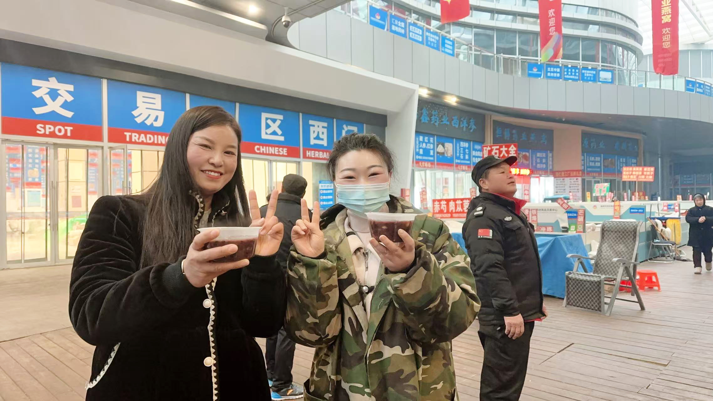 活动现场暖意融融,不少药商早早前来,手捧一碗暖粥,或驻足畅谈,或匆匆饮下后继续投入忙碌的经营,为寒冬里的交易市场增添了浓浓人情味。